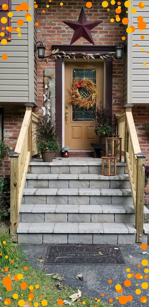 "Our front porch is complete! Love the pavers and rails. We are very pleased with the outcome."